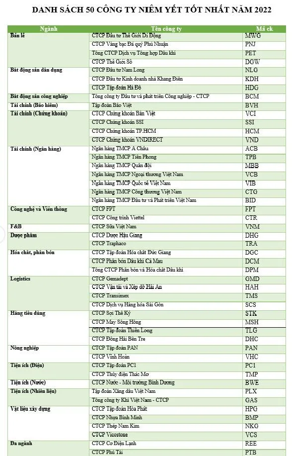 In order to select the companies for this list, Forbes Vietnam used the Forbes Company (US) ranking method, taking into account the characteristics of listed companies in Vietnam. The data used for evaluation was based on audited financial statements for 5 consecutive years in the period 2016 – 2021. Forbes Vietnam had considered all stocks listed on the HSX and HNX and arranged them by industry group.