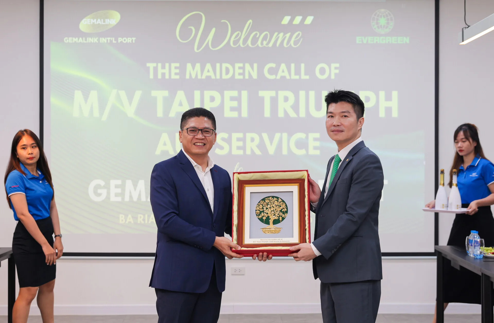 Gemalink was delighted to host a ceremony on November 6, 2023, with representatives from EVERGREEN Shipping Line to commemorate the inaugural arrival of the AUE service route, operated by the TAIPEI TRIUMPH vessel, at Gemalink on the afternoon of November 5, 2023
