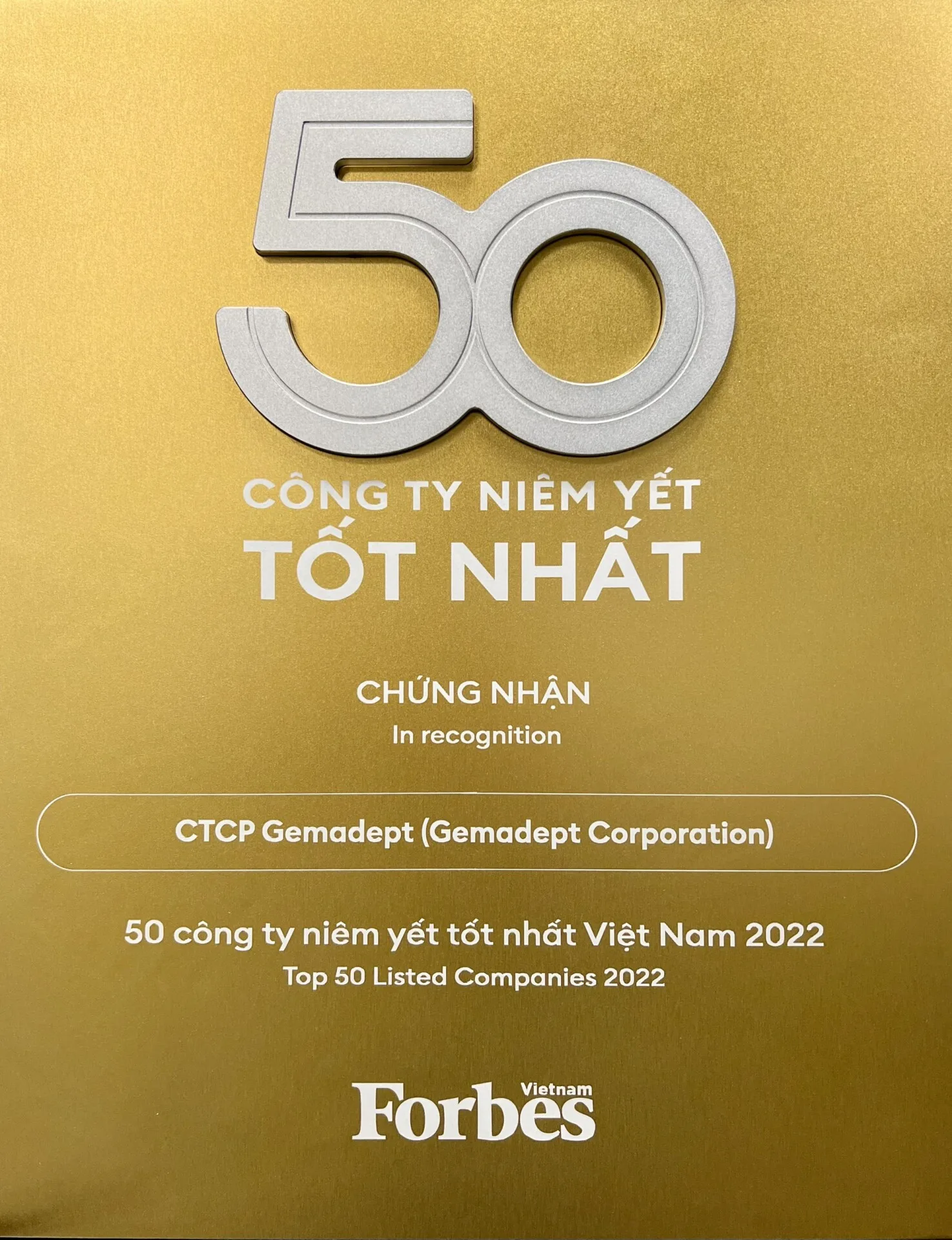 Ngày 6/6/2022 Forbes Việt Nam công bố “Danh sách 50 công ty niêm yết tốt nhất” năm 2022 lần thứ 10 bao gồm 138 doanh nghiệp được vinh danh. Với kết quả kinh doanh ấn tượng Công ty CP Gemadept lần thứ 6 được vinh danh trong bảng xếp hạng Forbes 50 – 50 Công ty niêm yết tốt nhất 2022. Niềm vui càng nhân đôi khi Công ty Dịch vụ Hàng hóa Sài Gòn (SCSC) cũng được vinh danh lần thứ 2 trong danh sách này.